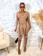 Long-sleeve fitted jumpsuit with a sleek, body-hugging silhouette.