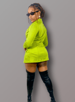• Single button closure cinching in the waist to create a fitted hourglass shape